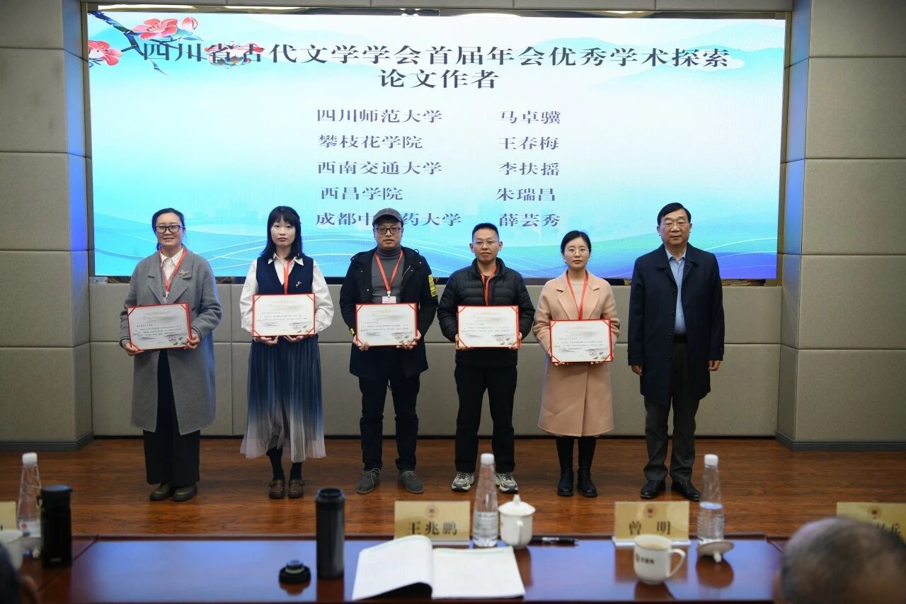 大会闭幕式由四川省古代文学学会秘书长李昊主持。学会副会长、四川大学孙尚勇教授作学术总结,梳理了本次会议150余篇论文的多元研究特征与蜀学特色,围绕技术、地方、边缘、生活(俗)、巴蜀五个关键词探讨了数字时代古代文学研究的新挑战与新方向。 教师组与研究生组共7位代表依次总结了分组研讨成果,全面呈现了大会的学术共识与研究亮点。本次大会评选出34篇优秀论文,涵盖教师组与学生组的“优秀学术启航论文”“优秀学术探索论文”“优秀学术创新论文”三个类别,相关领导、专家为获奖作者颁发证书。攀枝花学院文学院王春梅获“优秀学术探索论文”奖。