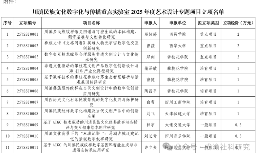 附件:关于川滇民族文化数字化与传播重点实验室2025年度艺术设计专题项目立项开放课题的通知