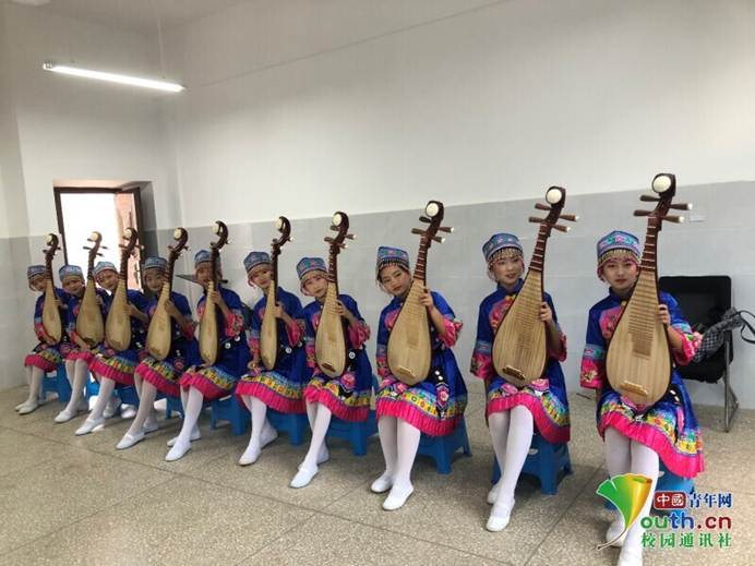 图为大龙潭中心学校谈经古乐琵琶队进行演奏展示,实践队员感受省级非遗音乐魅力。(阿洛牛兴供图)