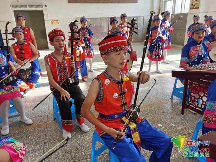 图为大龙潭中心学校用传统民俗乐器二胡表演经典谈经古乐曲目《朝歌》。实践队员深入分析古乐中融合的彝族祭祀音律与中原宫廷雅乐特征,为后续学术研究积累一手资料。(王银供图)