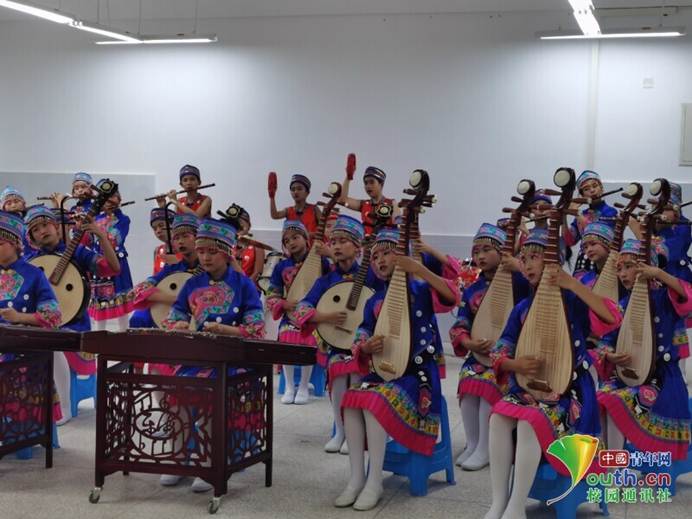 图为大龙潭中心学校小学生进行谈经古乐《五字诵》多乐器合奏,不同民族的学生共同参与同一首乐曲的演奏,直观展现了各民族像石榴籽一样紧紧抱在一起,用行动铸牢中华民族共同体意识。(王银供图)