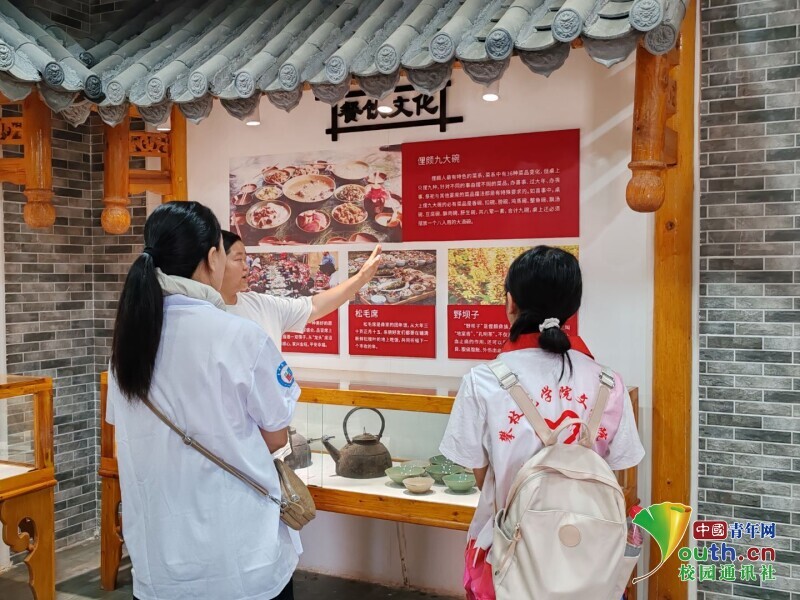 图为谢锦美为实践团成员讲解彝族餐饮文化。吴玉茹 供图