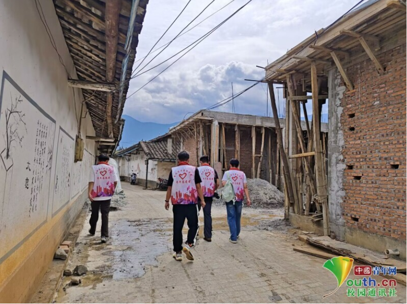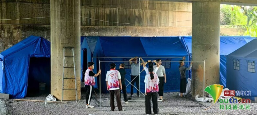 图为实践团成员参与村民临时居住帐篷的搭建。张祥丽 供图