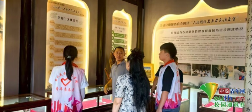 图为乡贤撒春伟带领实践团参观回族博物馆,深入感受独特回族文化。张萌飞供图