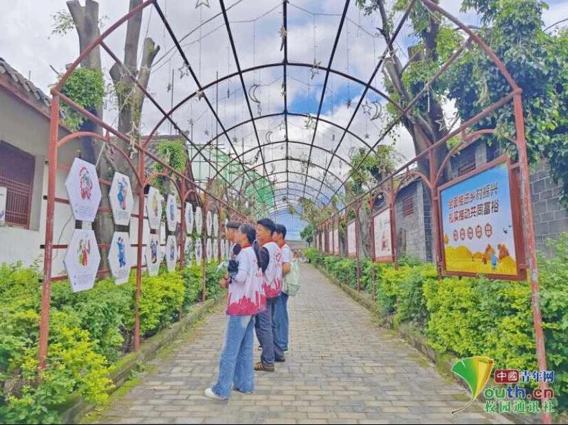 图为实践团在田坝村文化走廊,感受独特的文化氛围。张祥丽 供图
