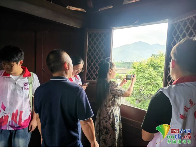图为驻村书记陈修发与实践团共同参观“望月楼”内部阁楼。王道棱 供图