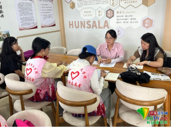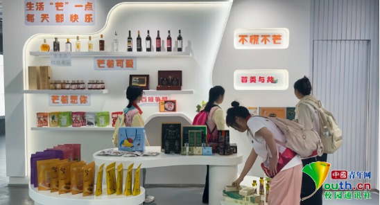 图为实践团成员参观芒果展厅内部并认真了解学习产品知识。张蕊 供图