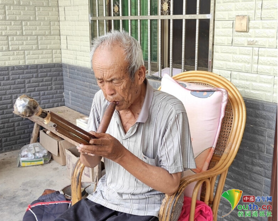 图为熊献清老族长为实践团成员演示吹芦笛。宋娟蕊供图