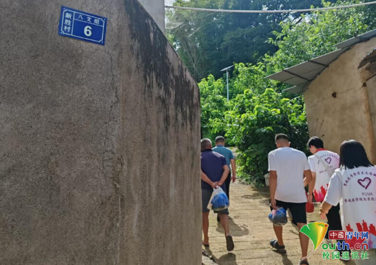 图为实践团成员与村民穿行八爱组巷道,开展调研工作。王欣冉供图