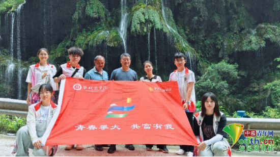 图为实践团成员与村干部合影。王欣冉供图