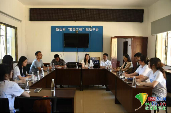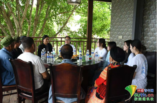 图为实践团在新山村会议室,与村干部交流新山傈僳族乡村史及相关发展情况。吴涵供图