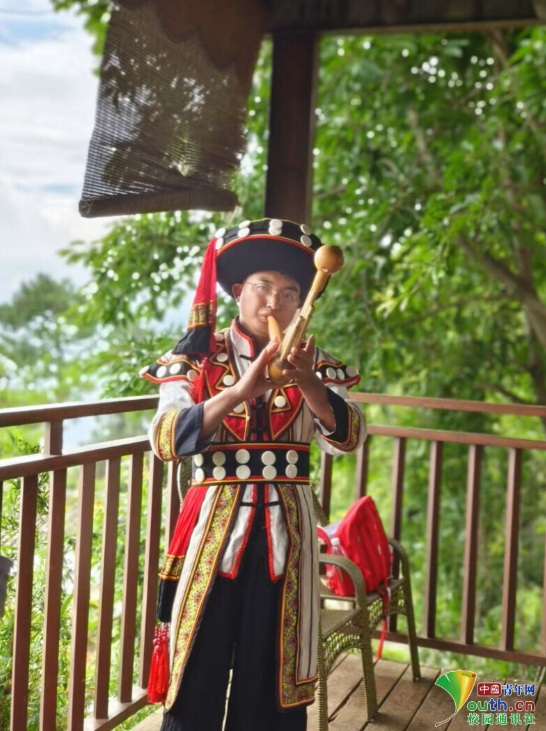 图为非遗传承人贺才国用葫芦笙吹奏《接亲调》。许丹供图