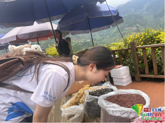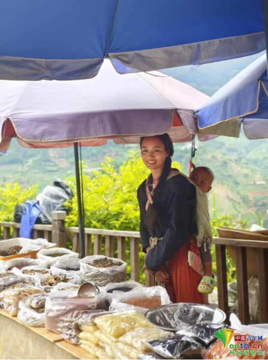图为傈僳族母亲背着孩子,在“共富集市”经营特色物产。吴涵供图