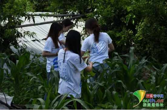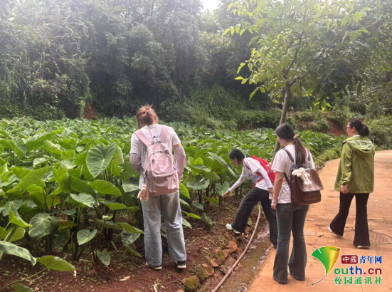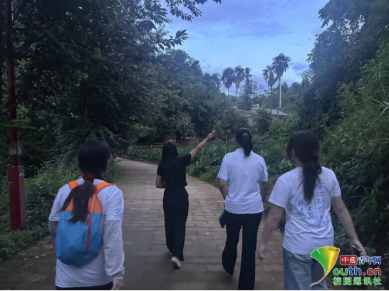 图为当地村委会副主任张华美带领实践团在村中步道参观。唐平 供图