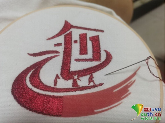 图为非遗传承人纳永芳手工缝制的彝绣作品。