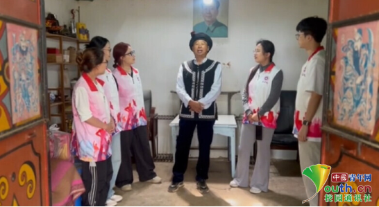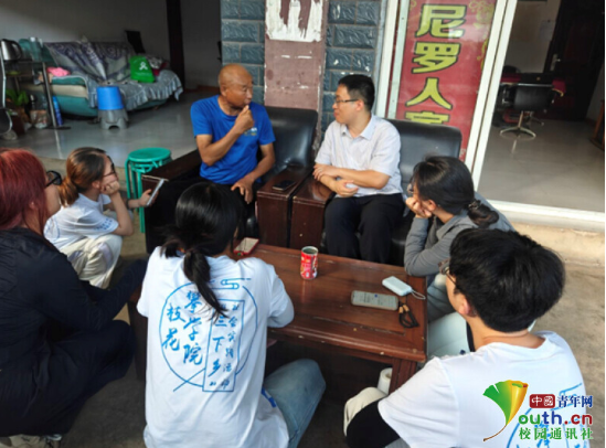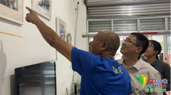 图为柴启富老人为团队成员讲述过去经历的场景。