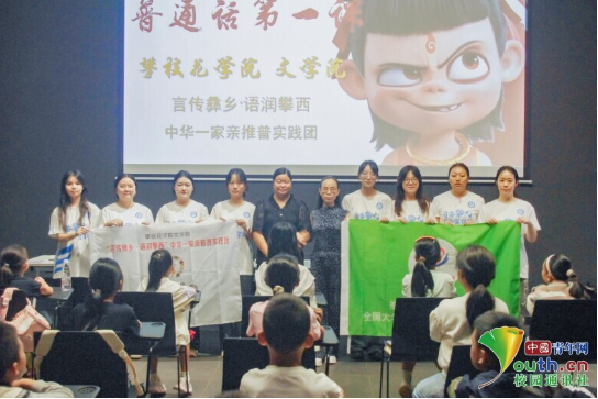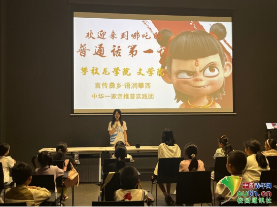 为深入推广国家通用语言文字,丰富彝乡孩童文化生活。攀枝花学院“言传彝乡,语润攀西”推普实践团于7月11日走进四川省攀枝花市仁和区迤沙拉村观星台,开展“童声闹海”特色配音活动。实践团创新互动形式,在观星台搭建童趣配音区。活动以三大环节层层递进,先以“击鼓传花”游戏点燃现场氛围,迅速拉近彼此距离;随后,队员带领孩子做口部操,从唇齿开合到气息调节,逐字纠正发音细节,夯实普通话基础;最后进入核心环节——哪吒电影片段配音,队员们先示范讲解台词的情感表达,再指导孩子们分组进行模仿练习。