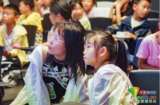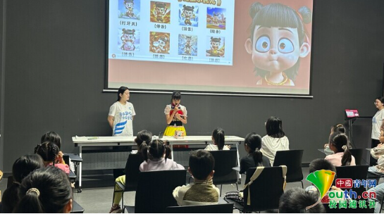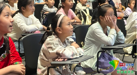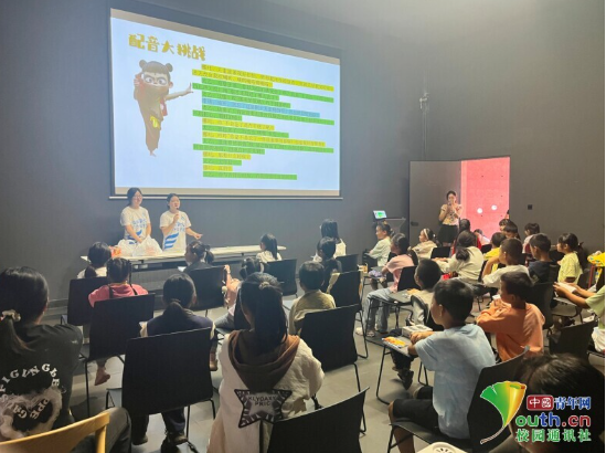 图为小朋友们认真学习配音教学,沉浸式走入“童声闹海”的世界。