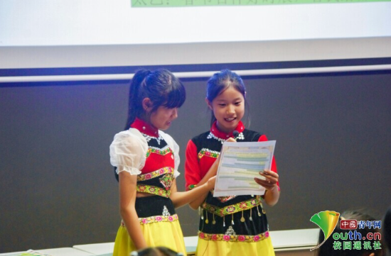 图为实践队队员介绍本次活动内容,并宣布“童声闹海”活动正式开始。张蕊 供图