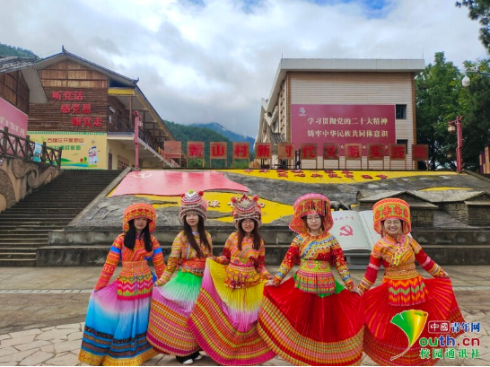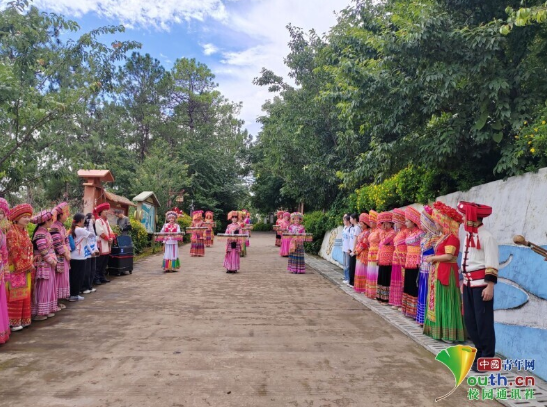 图为实践团成员试穿体验傈僳族特色服饰。