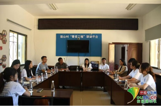 图为实践团成员与新山傈僳族乡新山村村干部开展座谈会,了解新山村的基本村情。