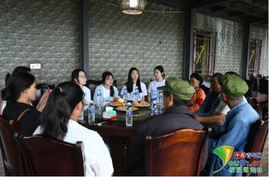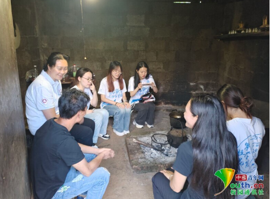 图为实践团成员与村民围坐交流,面对面倾听民俗故事,深入了解傈僳族传统习俗与文化传承情况。