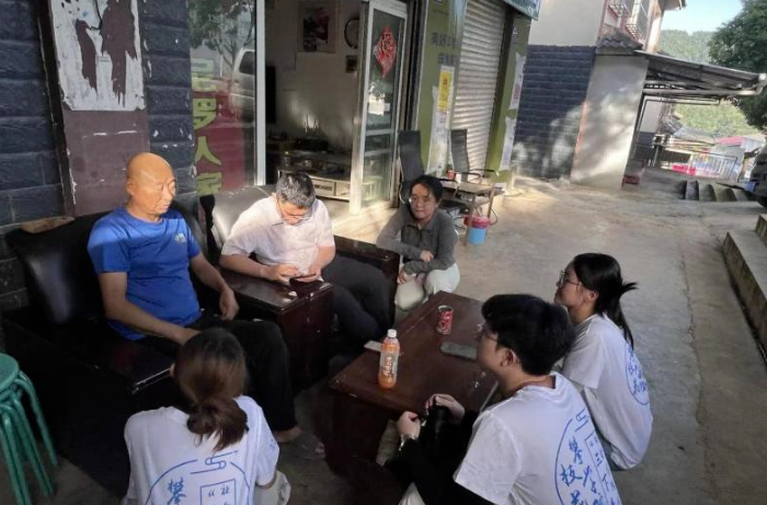 图为团队成员听柴启富老人讲述。万梦茜供图