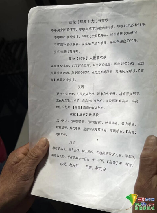 图为尼罗文化传承人柴启富老先生整理成册的尼罗山歌文稿。林熠 供