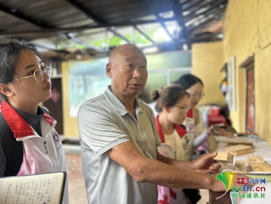图为尼罗文化传承人柴启富老先生邀请实践团队成员参观他收藏老物件的“家庭博物馆”。万梦茜 供图