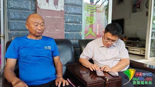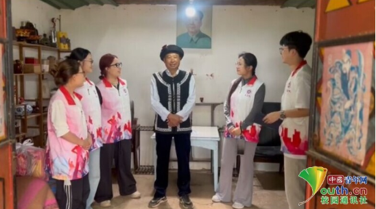 图为实践团带队老师来到尼罗文化传承人柴启富老先生的家中进行采访和记录。胡莉供图