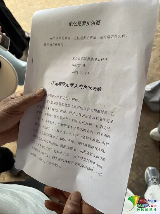 图为尼罗文化传承人柴启富老先生编写的麻陇尼罗文化历史风俗综述。林熠 供图