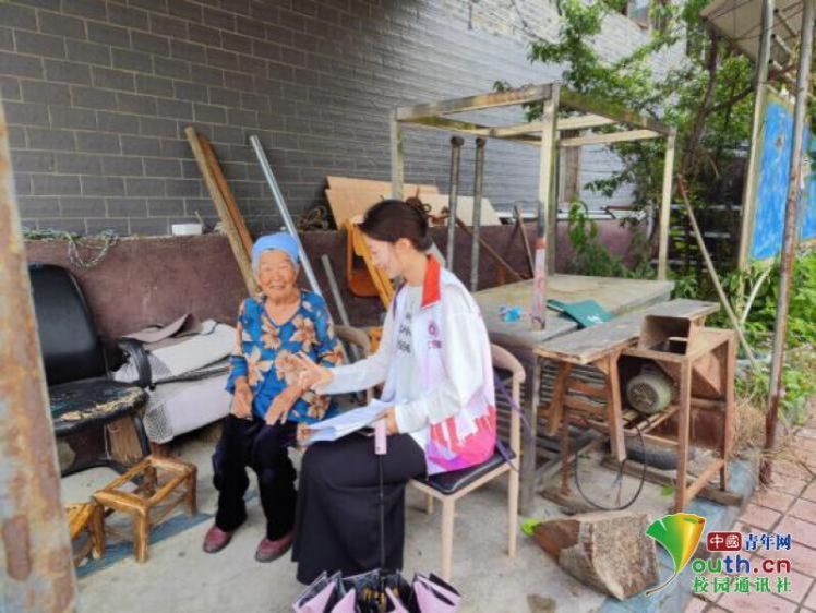 图为实践团队员采访当地村民马慧,了解盖头文化。邹淇 供图
