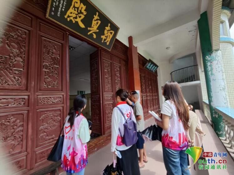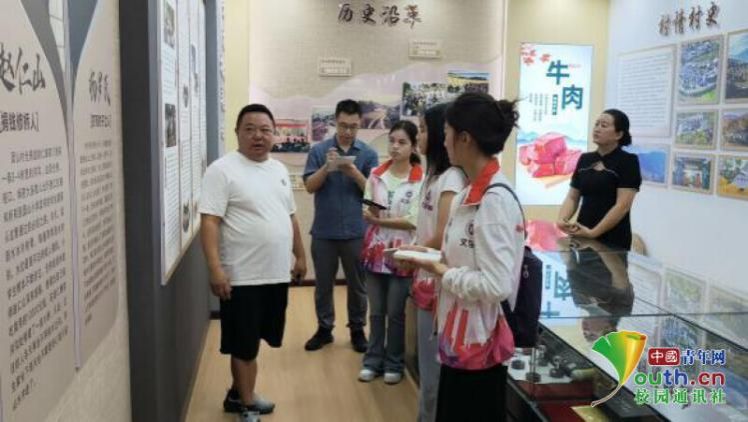图为团山村村支书带领实践团师生参观村史馆。 刘玉梅 供图