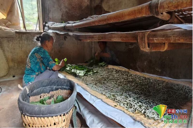 图为蚕农在蚕室照料蚕宝宝。王欣冉 供图