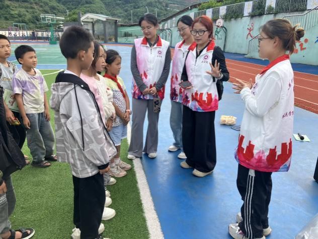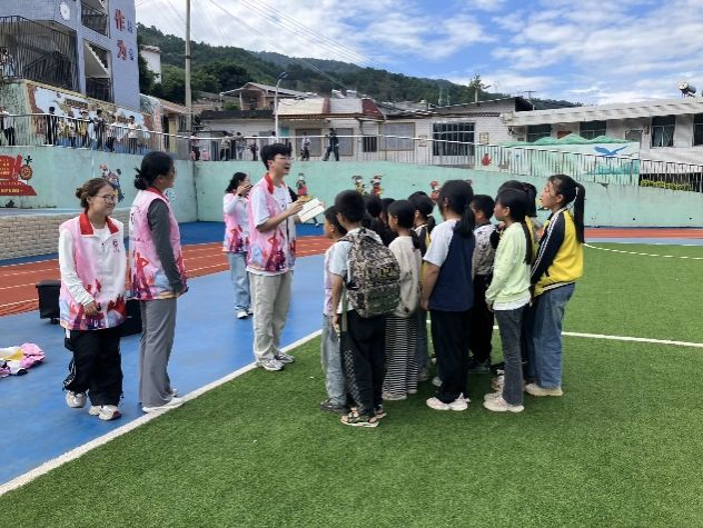 图为实践团队成员为参与活动的学生介绍游戏规则与注意事项。刘文玉 供图