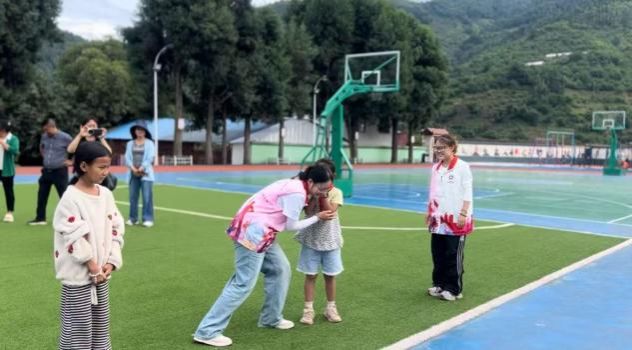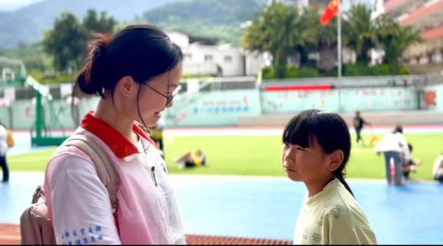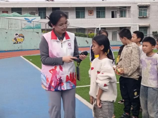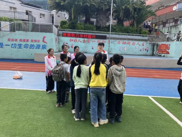 图为团队成员在活动开始前与麻陇彝族乡中心小学的学生沟通交流的画面。林熠 供图