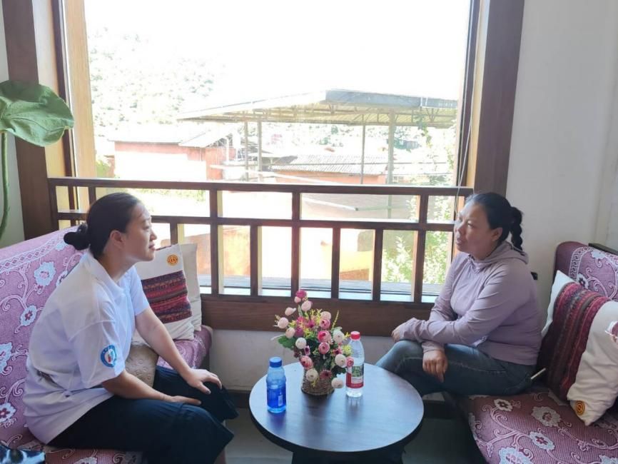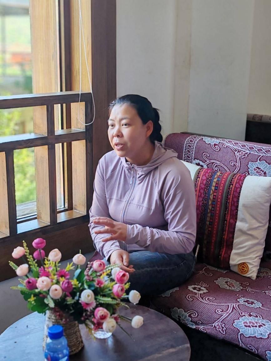 图为实践队在迤沙拉游客中心对非遗传承人纳永芳进行访谈。黄雅思 供图