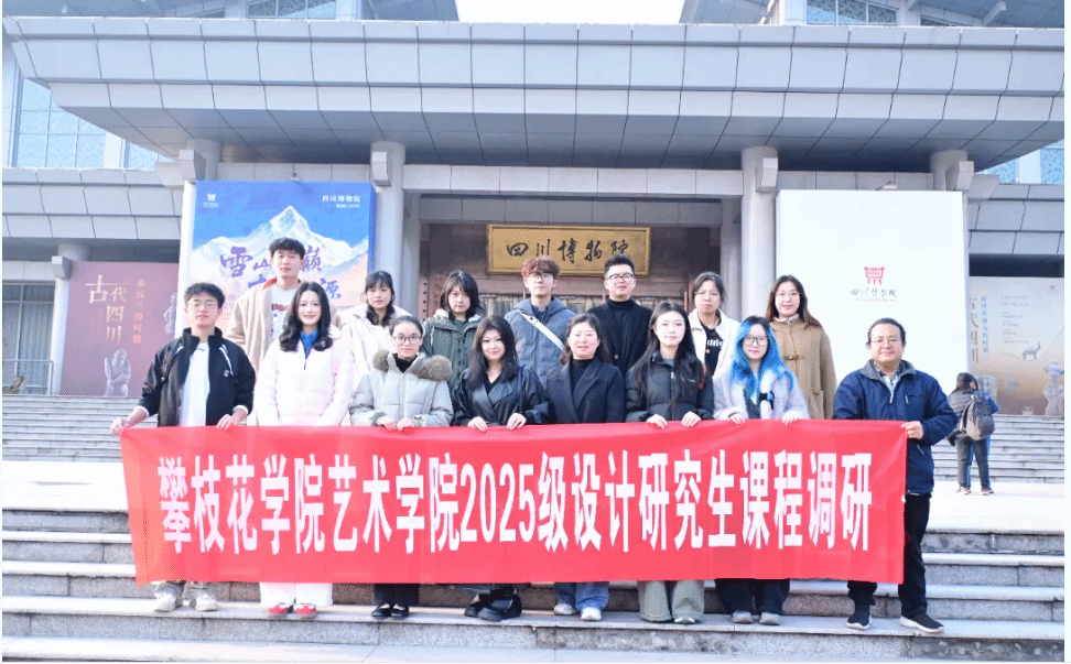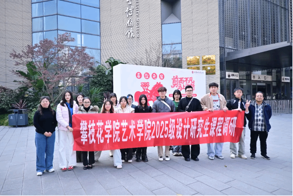1 月 15 日至 18 日,2025级设计硕士班开展为期四天三夜的 “溯源巴蜀文脉,赋能设计创新” 设计史论实地研学实践活动,以攀枝花为起点,途经广汉、成都两地,通过探访各类文化场馆、沉浸式感受地域文化,深度挖掘巴蜀传统艺术的设计元素与文化内涵,将设计史论专业知识与实地实践相结合,为后续设计创作积累丰富素材。