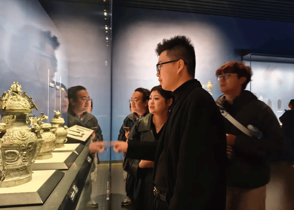 研学途中,团队满怀热忱,认真聆听讲解、细致记录设计细节与灵感,围绕文物美学研讨交流,探索传统工艺与现代设计融合路径,在实地探访中深化转化专业知识,对巴蜀文化的设计内涵有了更直观深刻的理解。