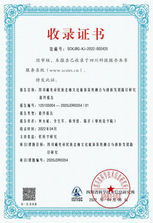 蒋秀碧-四川藏羌彝民族走廊文化旅游深度融合与创新发展路径研究 最终报告研究报告